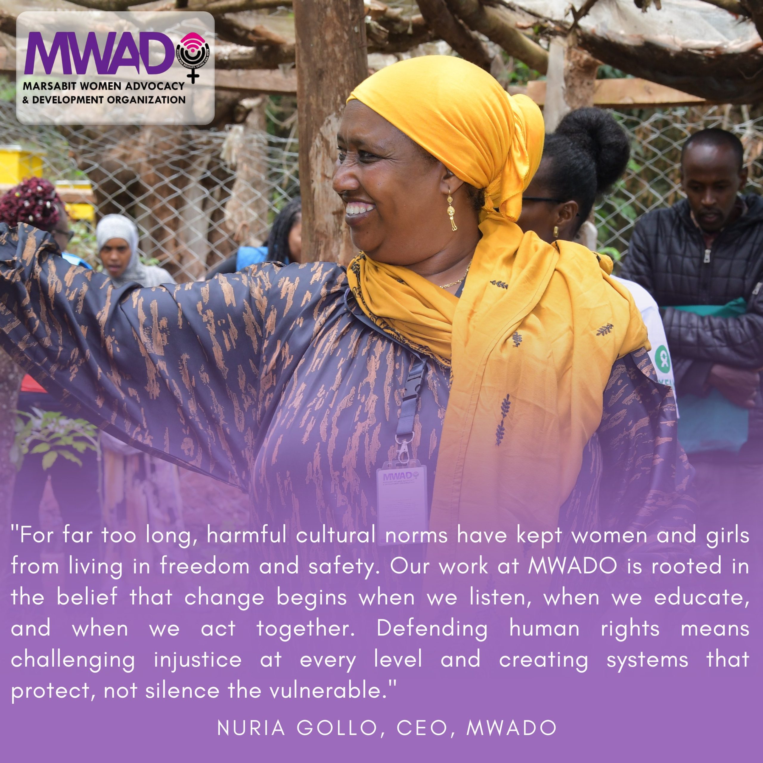 "Our work at MWADO is rooted in the belief that change begins when we listen,when we educate and when we act together.Defending human rights means challenging injustice at every level and creating systems that ptotect,not silence the vulnerable"